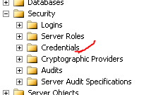 To create this proxy account, you need first create a new Credential. Open SQL Server Management Studio and connect to the server/instance where the reporting database is located, and you can find the Credentials folder under the Security folder. Please make sure this credential has rights to access ‘Sports Court Log’ Sharepoint list.
