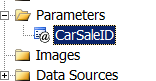When users click the ‘Details’ link at bottom right corner on each car item, we expect the report to drill through to the car details report. Firstly, we add a new report (the car details report) into the BIDS project, and then create a parameter called ‘CarSaleID’ which will receive the item id passed through from the clicked car item.