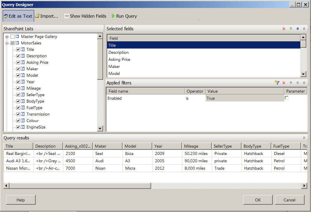 building SharePoint application using SQL Server Reporting Services. To introduce this approach, I will demo how to create a simplified second-hand car listing solution (within less than one hour):