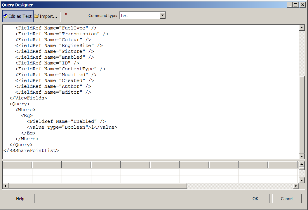 Then, we need add a data set to retrieve data from the Sharepoint Cars list. We can use the query designer to build the query.