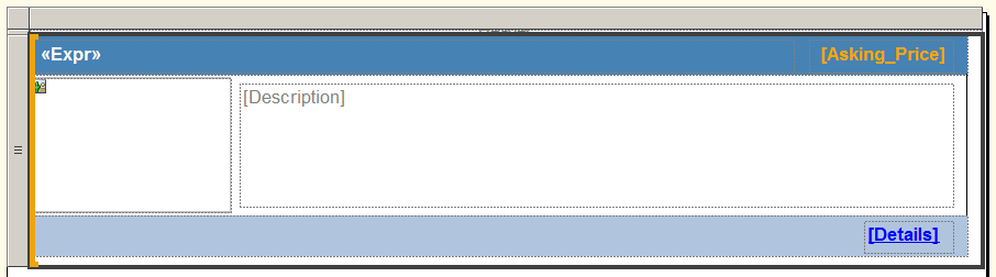We drag a table onto the report body and only keep one column, and then add a ‘Rectangle’ into the row cell and use the ‘Rectangle’ as the canvas to build the car listing item template.