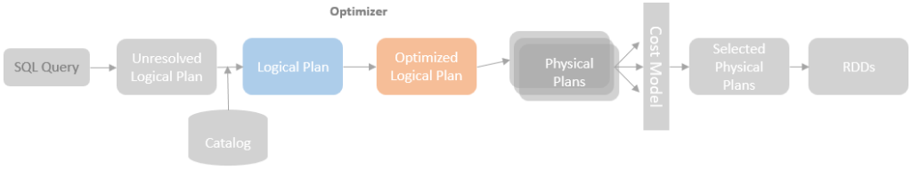 Spark SQL Catalyst provides a rule-based optimizer to optimise the resolved logical plan before feeding it into the SparkPlanner to generate the physical plans. An experienced programmer can write more efficient code because they have a set of rules, design patterns and best practices in their brain and can choose a suitable one depending on the situation. A rule-based optimizer plays the same role, which maintains a set of predefined rules and applies those rules to transform a logical plan to an optimised status expected by those rules.