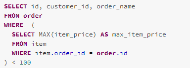 Take the following correlated subquery as example, the subquery references the attribute order.id from the outer query in the filter clause.