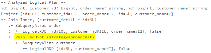 The join hint information is extracted by the ExtractEquiJoinKeys pattern mentioned above and used in the join strategy selection process which will be explained later in this blog post.