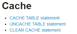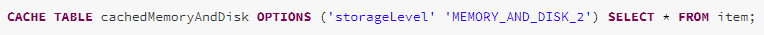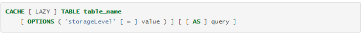 Taking the CACHE TABLE statement as an example, it allows developers or analysts to specify the cache execution mode (eager or lazy), the cache storage level, and the SELECT query defining the cache data.