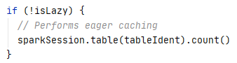 As mentioned in the previous blog post explaining the runnable commands in Spark SQL, the runnable commands are executed eagerly. The caching operations are internally conducted using persist operator which is executed lazily. Here Spark SQL cheats the eager execution of cache commands by forcing a count action after the underlying persist operation is constructed. Users can roll back to lazy execution by specifying the LAZY parameter in the Cache statement.