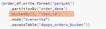The bucketing specifications defined by the end-user developers are encapsulated in a BucketSpec object containing the column expressions which the buckets are created based on and the number of buckets. A HashPartitioning is initialised based on the bucketing column expressions and the number of buckets. The partitionIdExpression of the created HashPartitioning is then picked up as the bucket id expression for grouping the input data rows into buckets based on the bucket id.
