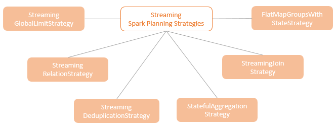 As mentioned above, processing stateful operations where intermediate states are required to be maintained across micro-batches is one of the core requirements for incremental streaming executions. Up to the Spark V3.2, six planning strategies are provided by the Spark Structured Streaming.