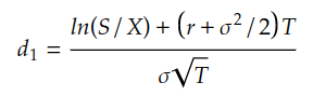 d1 = (np.log(s / k) + (r + 0.5 * sigma ** 2) * T) / (sigma * np.sqrt(T))