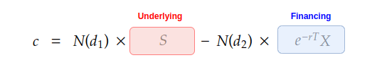 Here is the famous BSM formula for option pricing. This is the fundamental form, and many extensions or adaptations for more complex option pricing scenarios are derived from it.
