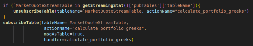 unsubscribeTable(tableName=`MarketQuoteStreamTable, actionName="calculate_portfolio_greeks")