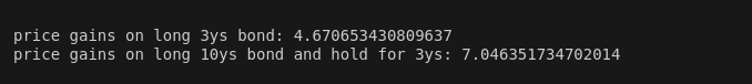 print("price gains on long 10ys bond and hold for 3ys: "+str(diff_10y))