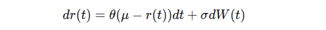 Similar to the CIR model, the Vasicek model reflects the mean reversion market behaviour. As the formula below shows, the drift term of Vasicek model is the same as the CIR model’s. The main difference between these two models is that the Vasicek model assumes constant volatility, which can theoretically result in negative interest rates