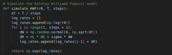 dR = kappa * (rL - rates[i-1]) * dt + sigma * np.sqrt(rates[i-1]) * dW
