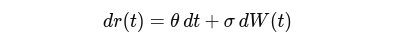 The Ho-Lee model is one of the simplest term structure models. Both the drift term (θ) and the volatility term (σ) are constant in the model, meaning it ignores time-varying volatilies.