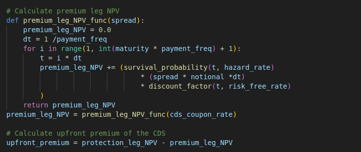 premium_leg_NPV += (survival_probability(t, hazard_rate)