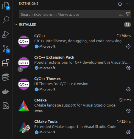 Once VS Code is installed, you can add extensions to support your C++ development. The main ones are: C/C++ by Microsoft and the CMake Tools extension.