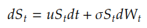 Based on the portfolio holdings and their risk characteristics, we can proceed to simulate scenarios for the portfolio’s returns. In previous blog posts, we discussed various models for simulating stock price movements and interest rate dynamics. Since the portfolio in our example is an equity portfolio, we will simulate the price movements of the constituent stock assets using Geometric Brownian Motion (GBM). GBM is a widely used model for stock price simulation due to its ability to capture key features such as random fluctuations and exponential growth or decay. Below, we provide the formula and a visualisation of the GBM process. For more details, you can refer to the previous blog post – “Coding towards CFA (9) – From Binomial Tree to BSM“.