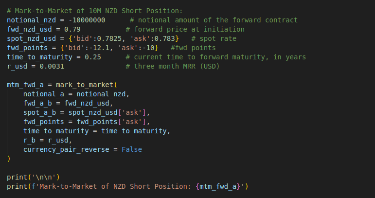 print(f'Mark-to-Market of NZD Short Position: {mtm_fwd_a}')